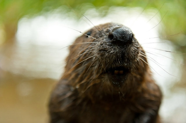 Gut zu erkennen sind die langen, “borstigen” und sehr empfindlichen Tasthaare der Biber, die auch als Vibrissen genannt werden. Diese dienen den Tieren bei absoluter Dunkelheit oder auch z.B. unter Wasser um sich tastend fort zu bewegen.