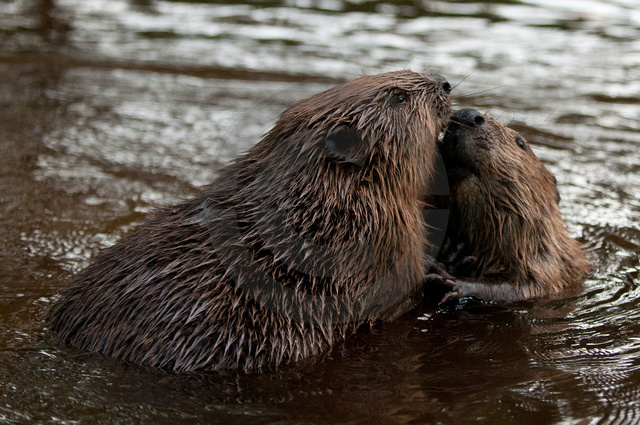 Biber beim Revierkampf, anfangs wie zwei Ringer, klappt das nicht werden die messerscharfen Zähne als Waffen eingesetzt